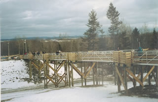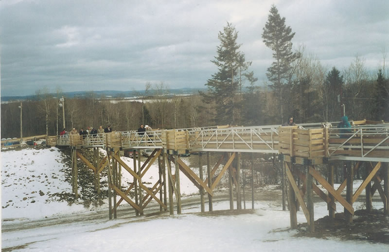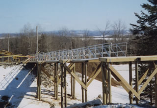 This system of ten gangways was installed to allow pedestrian traffic to pass over the cross country ski trails at the Maine Winter Sports Complex / Olympic Training Facility in Presque Isle, Maine.