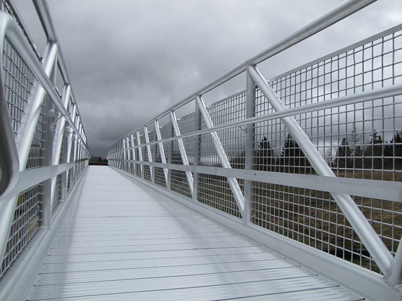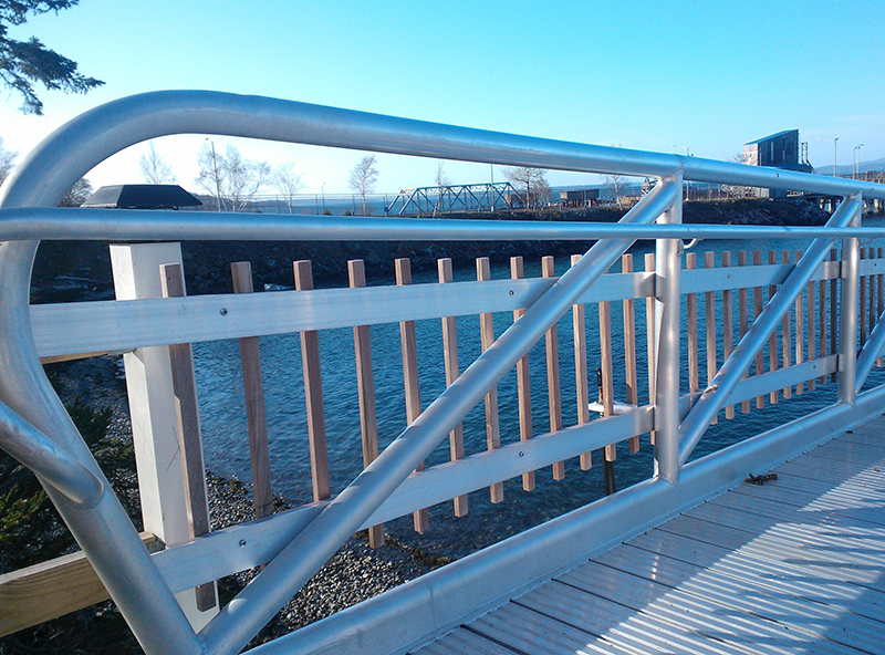 Maine State Pier passenger boarding gangway system with wire mesh infill. |